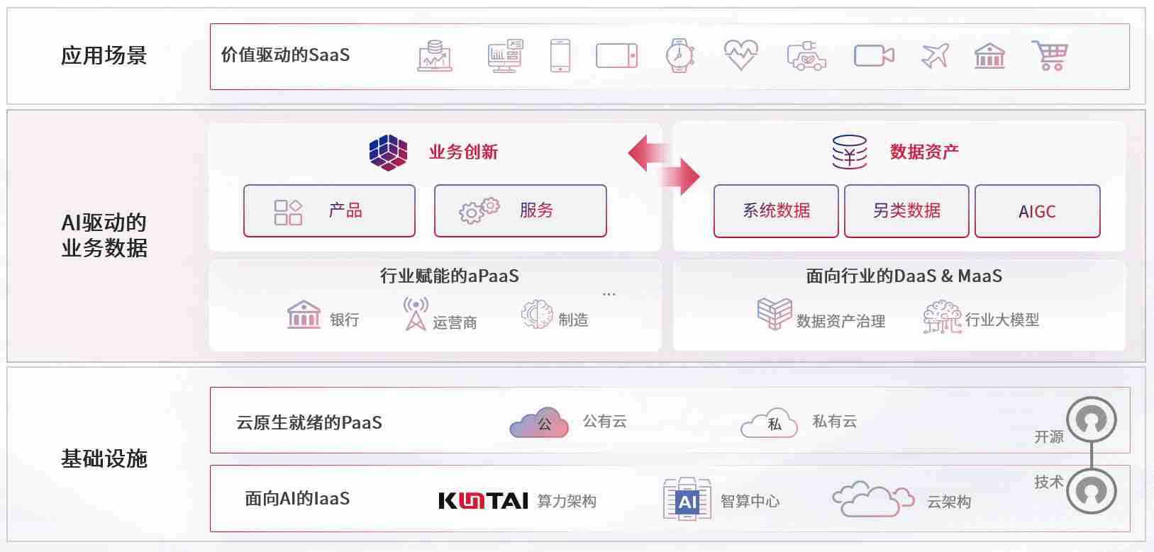 数字时代,,,围绕企业数字化转型的关键要素,,z6com尊龙数码开创性的提出数云融合战略和技术体系框架,,着力在云原生、、数字原生、、、AI原生和信创产业上架构产品和服务能力,,为处在不同数字化转型阶段的快消零售、、、、汽车、、、、金融、、、、医疗、、、、政企、、、教育、、、运营商等行业客户提供泛在的敏捷IT能力和融合的数据驱动能力,,,,构建跨界融合创新的数字业务场景和新业务模式,,,助力企业级客户建立面向未来的核心能力和竞争优势,,全面推动社会的数字化、、、智能化转型升级。。。。